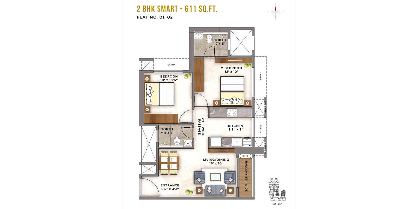 About 2 BHK 611 Sq. Ft. Ashar Axis