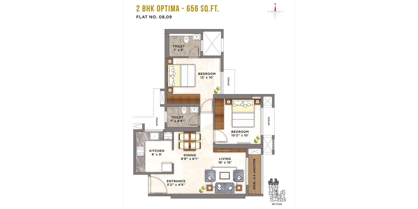 About 2 BHK 656 Sq. Ft. Ashar Axis