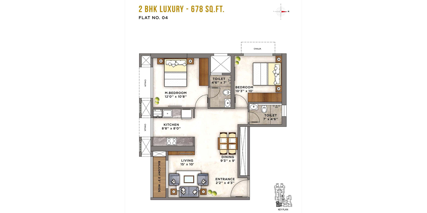 About 2 BHK 678 Sq. Ft. Ashar Axis