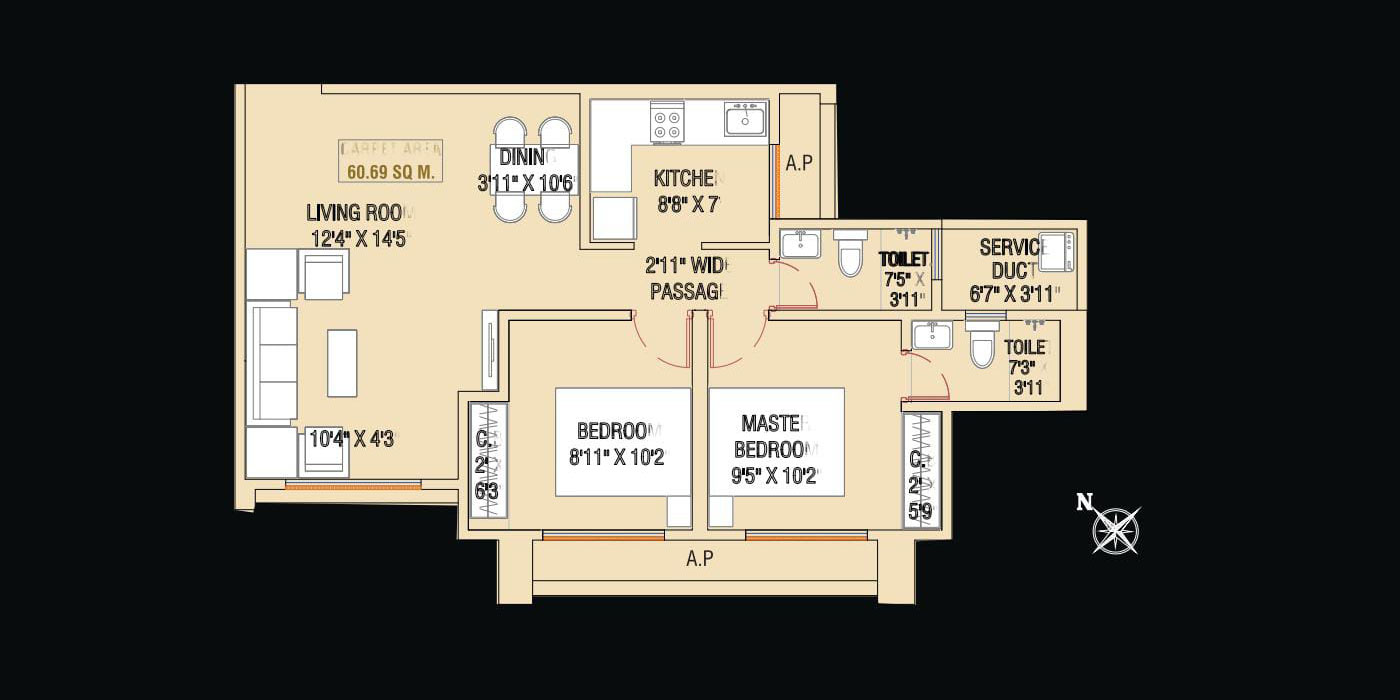 Unit Plan -- Bhagwati Belmont 2BHK