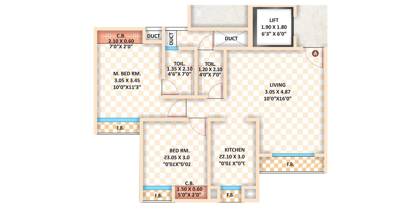 Unit Plan -- Cosmos Hilton 2BHK