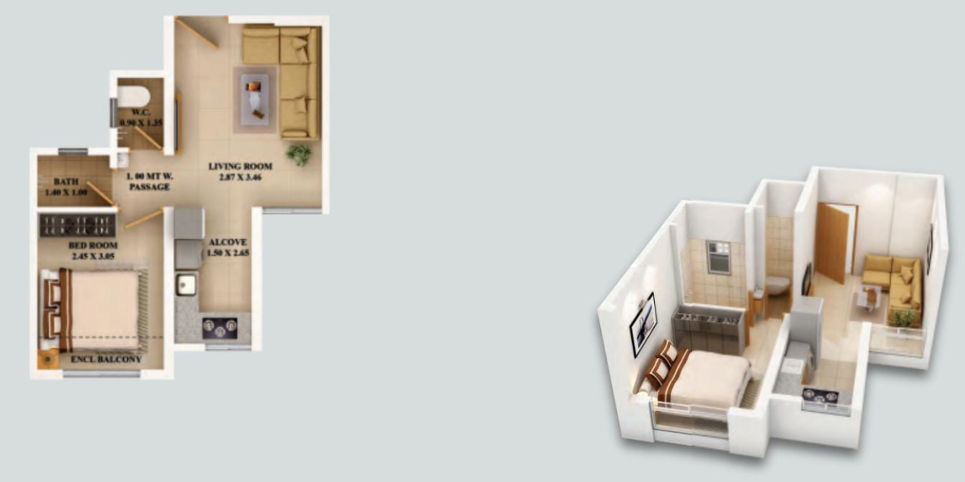 Unit Plan -- Dosti West County – Nest (Dove) 1BHK