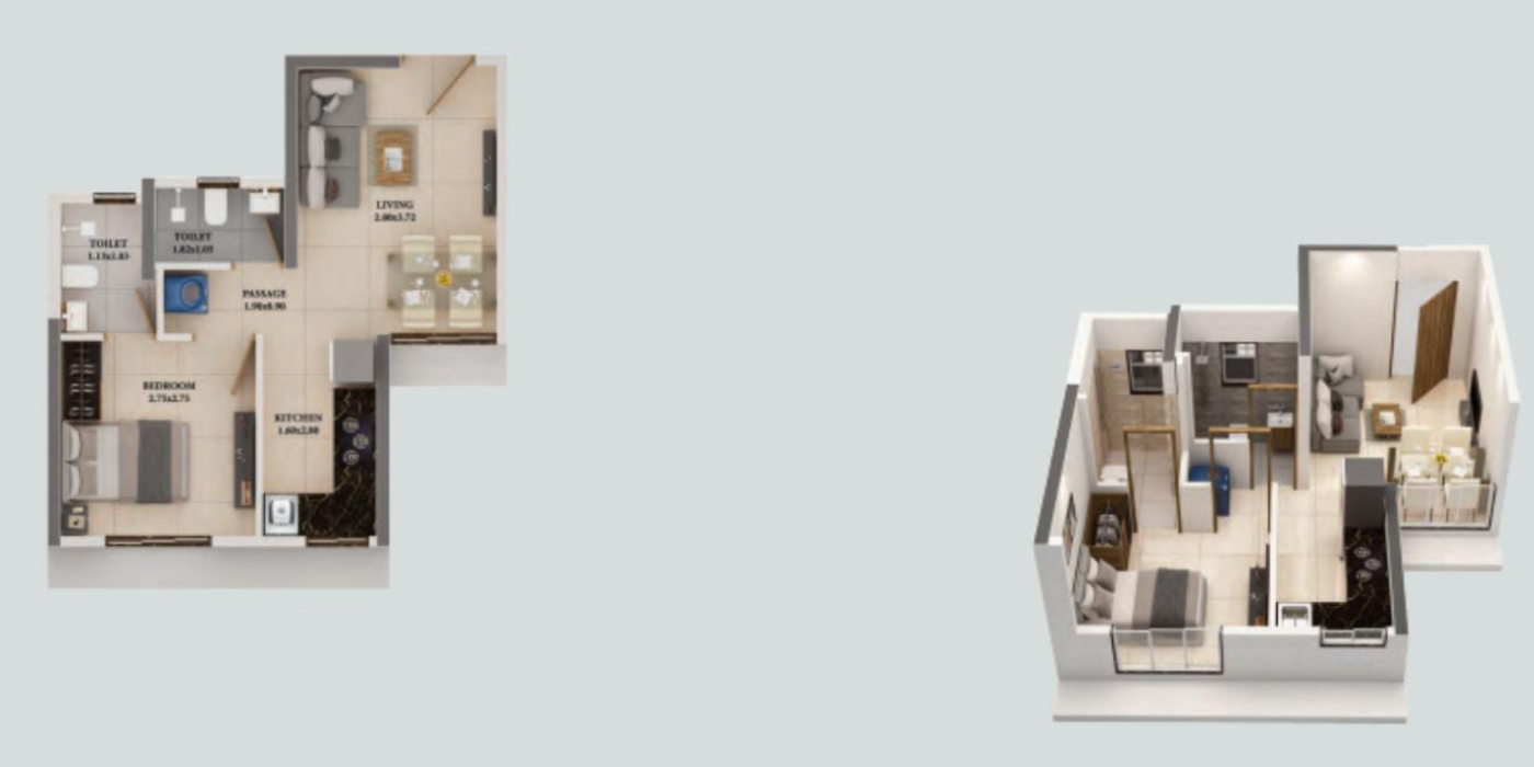 Unit Plan -- Dosti West County – Nest (Dove) 1BHK