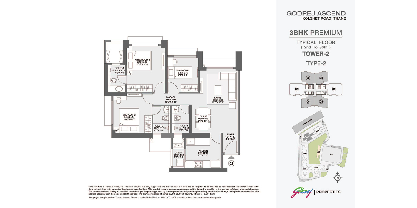 About 3 BHK 761 Sq. Ft. Godrej Ascend