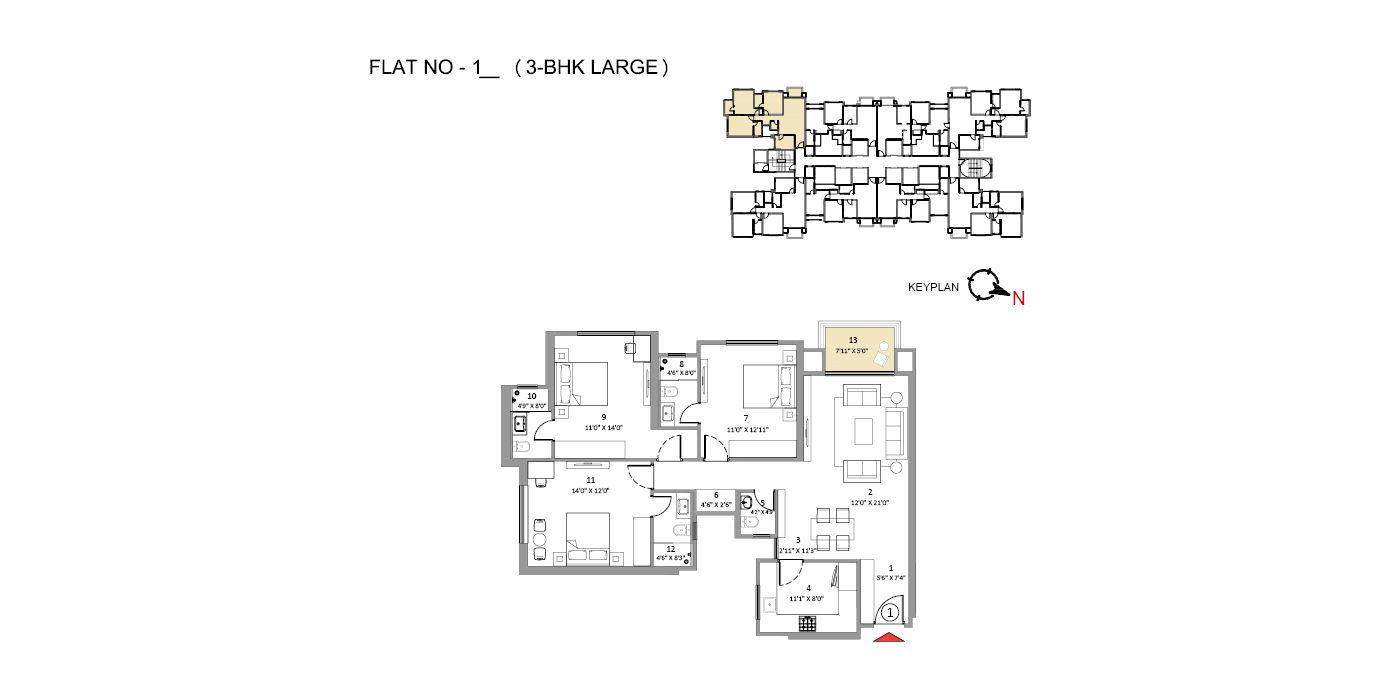 Unit Plan -- Hiranandani Belecia 3BHK