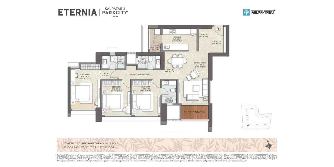 Unit Plan -- Kalpataru ParkCity – Eternia 3BHK