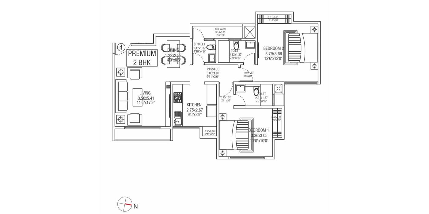 Unit Plan -- Lakhani Empire Estate 2BHK