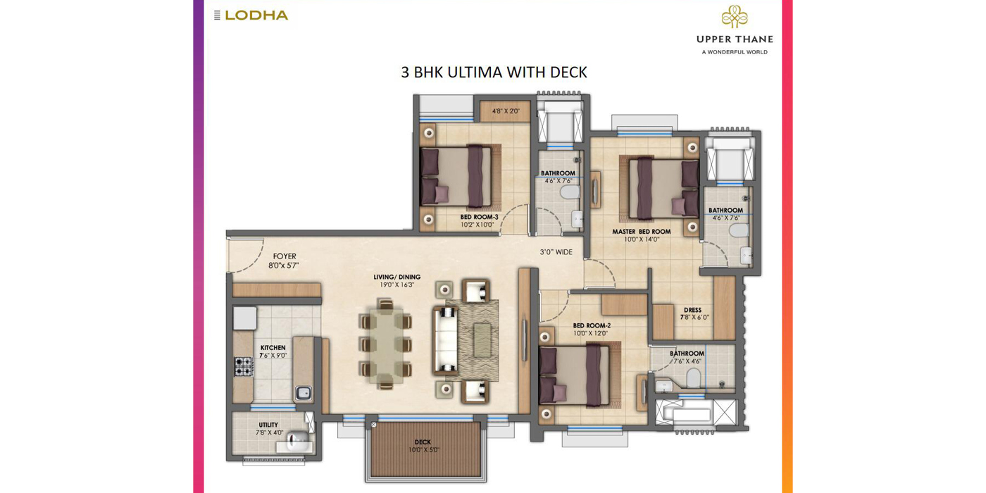 Unit Plan -- Lodha Upper Thane 3BHK