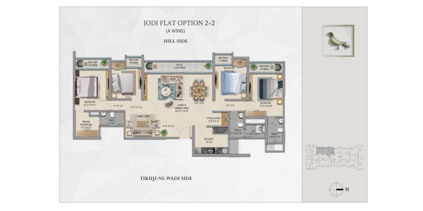 The images and other details herein are only indicative. The Promoter reserves the right to change any or all of these in the interest of the development, as per provision of law. Artist’s impressions are used to illustrate amenities, specifications, images, and other details. Tolerance of +/- 3% is possible in the unit areas on account of design and construction variances. All brands stated are subject to final decision of the project architect. This electronic / printed material does not constitute an offer and/or contract of any type between the Promoter and the recipient. No booking or allotment shall be deemed to have been made on the basis of this electronic / printed material. Any Purchaser / Lessee of this development shall be governed by the terms and conditions of the agreement for sale / lease entered into between the parties, and no details mentioned in this electronic / printed material shall in any way govern such transactions unless as may be otherwise expressly provided in the agreement for sale/lease by the Promoter. The Promoter does not warrant or assume any liability or responsibility for the accuracy or completeness of any information contained herein. This electronic / printed material has been created keeping in mind the provisions of the Real Estate (Regulation and Development) Act, 2016 (RERA) applicable for projects in Maharashtra. You are required to verify all the details, including area, amenities, services, terms of sales and payments and other relevant terms independently with the Promoter’s sales team only, by physically visiting the project site and the authorized website of RERA. You are requested NOT to visit any unauthorized or unverified website/broker (online / offline) to receive any information about any projects of the Promoter and/or its sister concerns. *Terms & Conditions Apply.