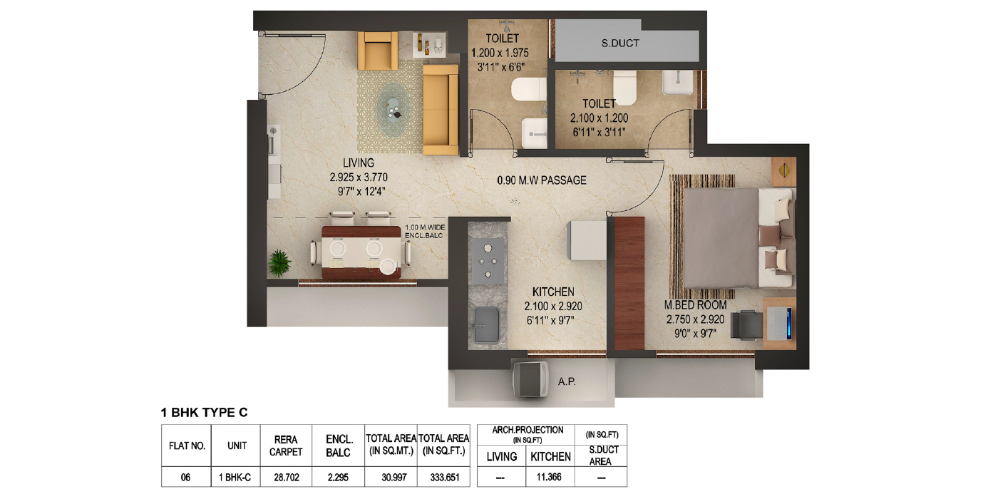 Unit Plan -- Puraniks Rumah Bali 1BHK