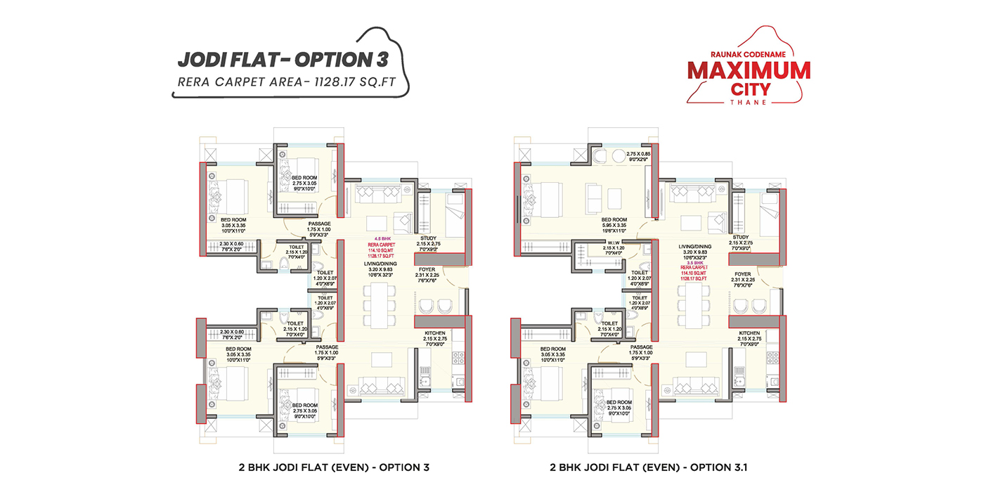 About 2 BHK 1128 Sq. Ft. Raunak Maximum City
