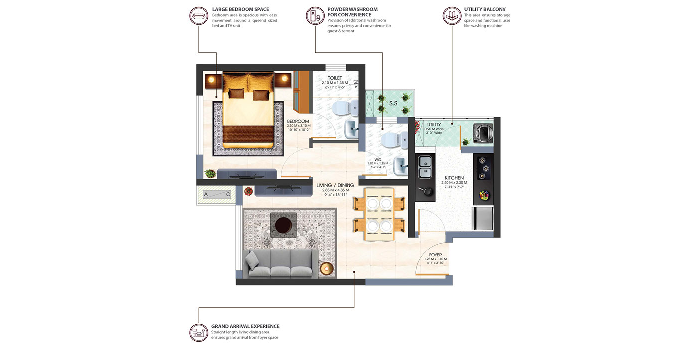 About 1 BHK 449 Sq. Ft. Risland The Icon