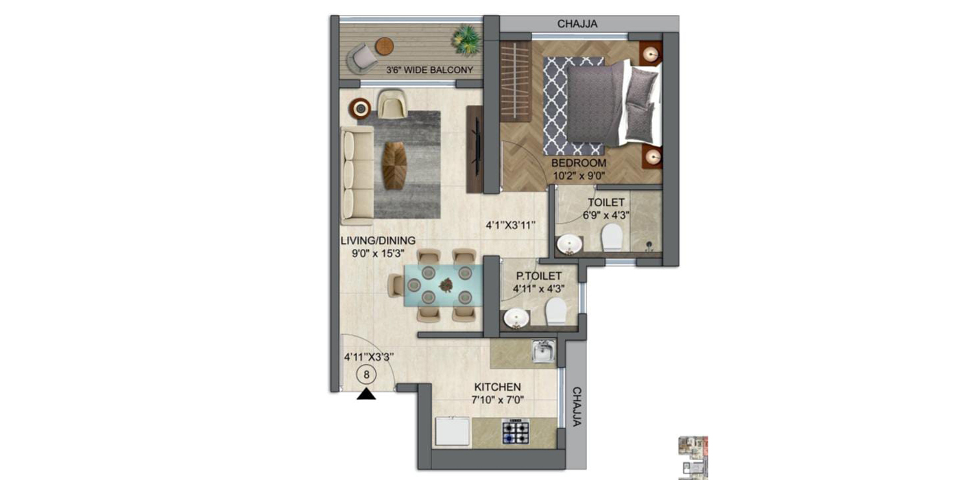 Unit Plan -- Runwal Enchanted 1BHK