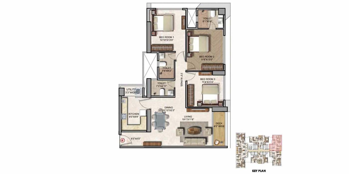 About 3 BHK 1072 Sq. Ft. Runwal Zenith