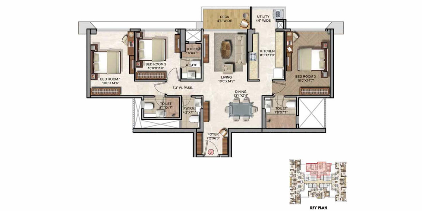 About 3 BHK 1141 Sq. Ft. Runwal Zenith