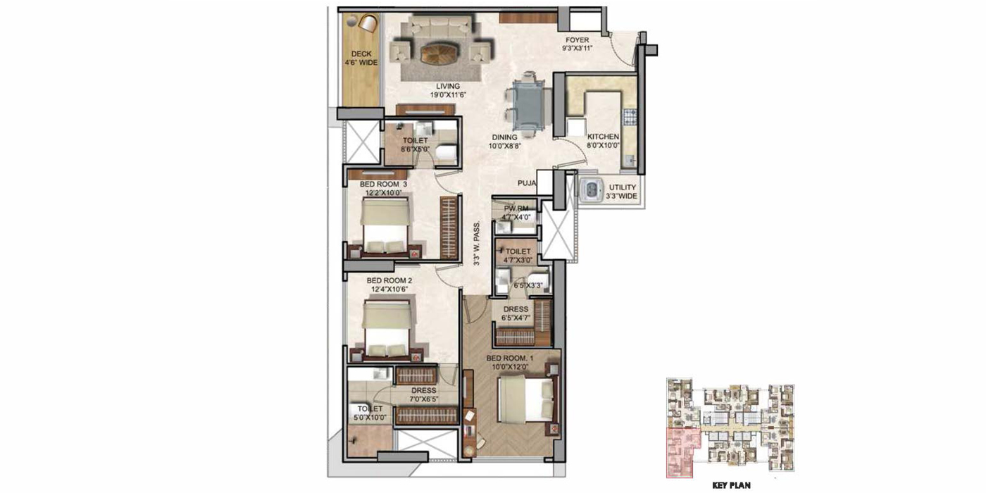 About 3 BHK 1214 Sq. Ft. Runwal Zenith
