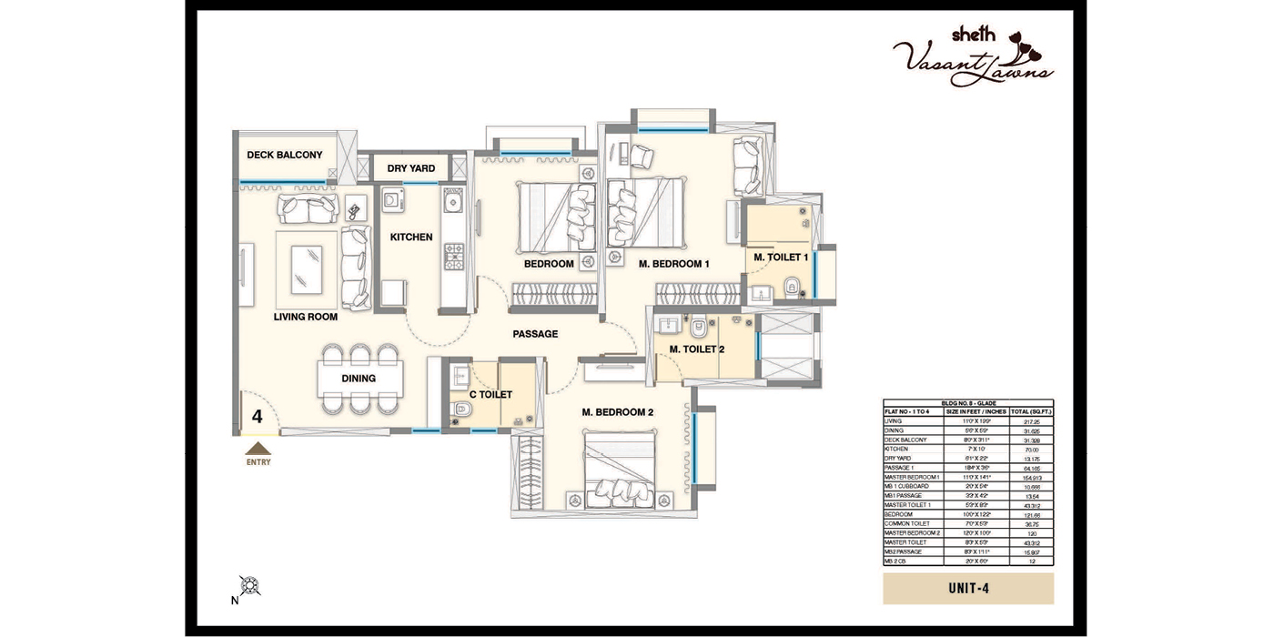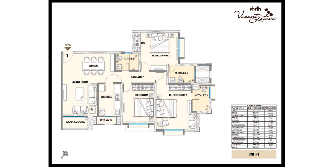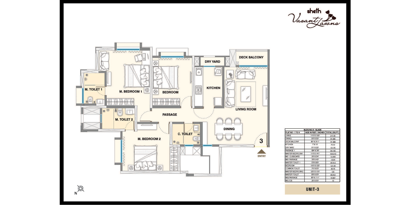 Unit Plan -- Sheth Vasant Lawns 3BHK