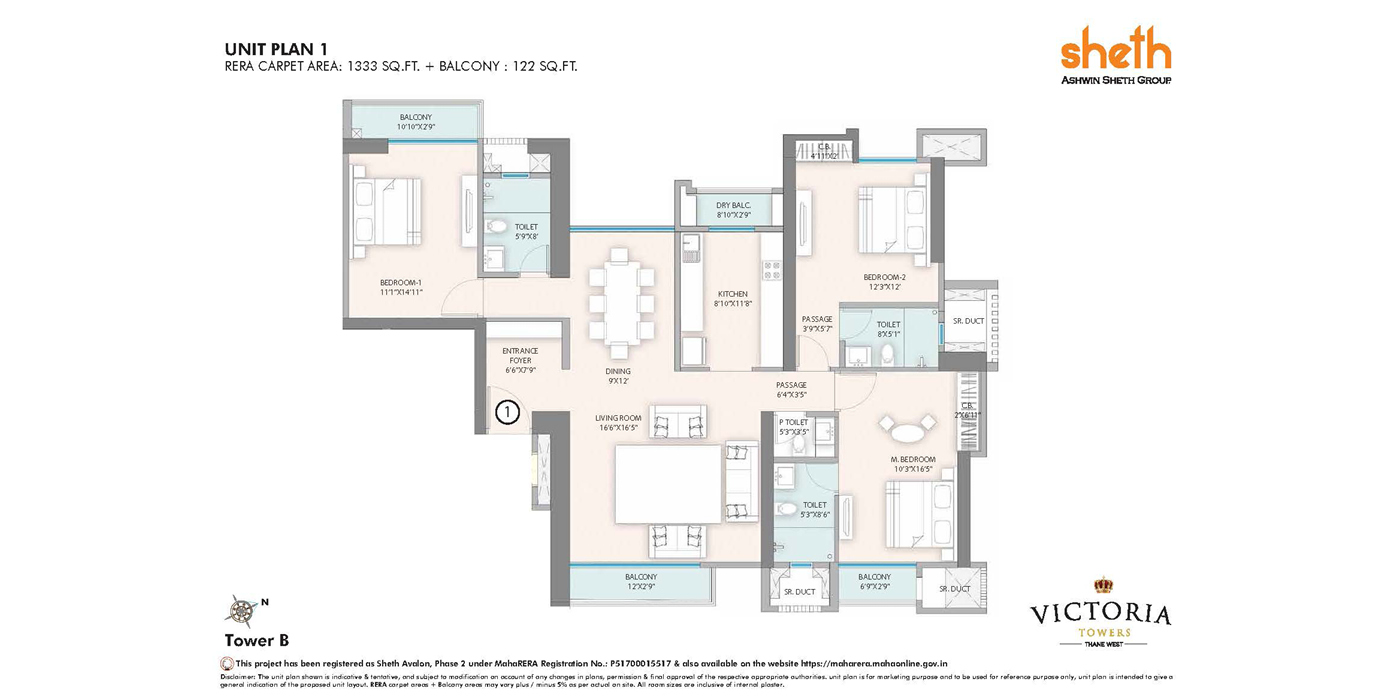 Unit Plan -- Sheth Victoria Tower 5BHK