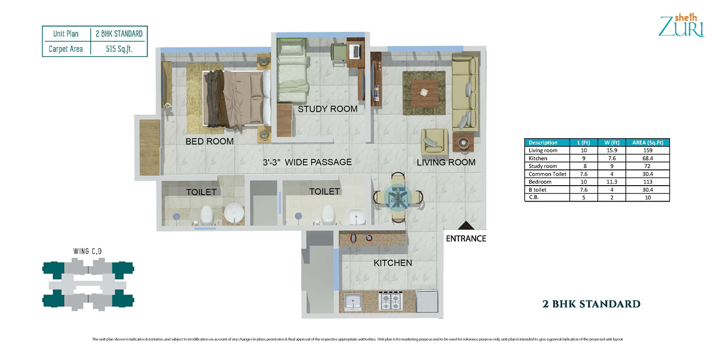 Unit Plan -- Sheth Zuri 2BHK