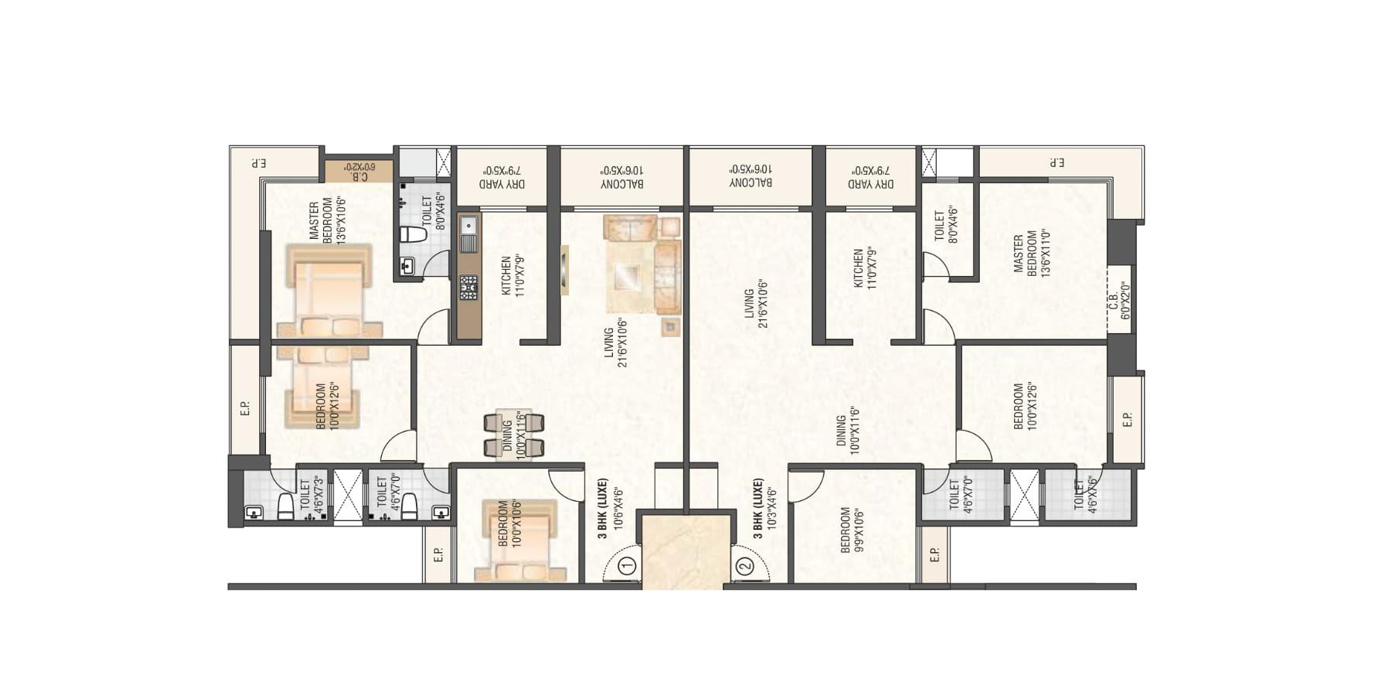 The images and other details herein are only indicative. The Promoter reserves the right to change any or all of these in the interest of the development, as per provision of law. Artist’s impressions are used to illustrate amenities, specifications, images, and other details. Tolerance of +/- 3% is possible in the unit areas on account of design and construction variances. All brands stated are subject to final decision of the project architect. This electronic / printed material does not constitute an offer and/or contract of any type between the Promoter and the recipient. No booking or allotment shall be deemed to have been made on the basis of this electronic / printed material. Any Purchaser / Lessee of this development shall be governed by the terms and conditions of the agreement for sale / lease entered into between the parties, and no details mentioned in this electronic / printed material shall in any way govern such transactions unless as may be otherwise expressly provided in the agreement for sale/lease by the Promoter. The Promoter does not warrant or assume any liability or responsibility for the accuracy or completeness of any information contained herein. This electronic / printed material has been created keeping in mind the provisions of the Real Estate (Regulation and Development) Act, 2016 (RERA) applicable for projects in Maharashtra. You are required to verify all the details, including area, amenities, services, terms of sales and payments and other relevant terms independently with the Promoter’s sales team only, by physically visiting the project site and the authorized website of RERA. You are requested NOT to visit any unauthorized or unverified website/broker (online / offline) to receive any information about any projects of the Promoter and/or its sister concerns. *Terms & Conditions Apply.